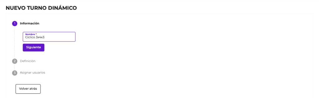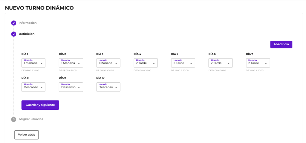 Como segundo paso, podremos configurar los turnos dinámicos que necesitemos