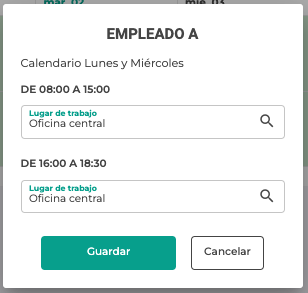 A través de esta opción podremos indicar un lugar de trabajo diferente para cada rango horario a través del selector de Lugar de trabajo.