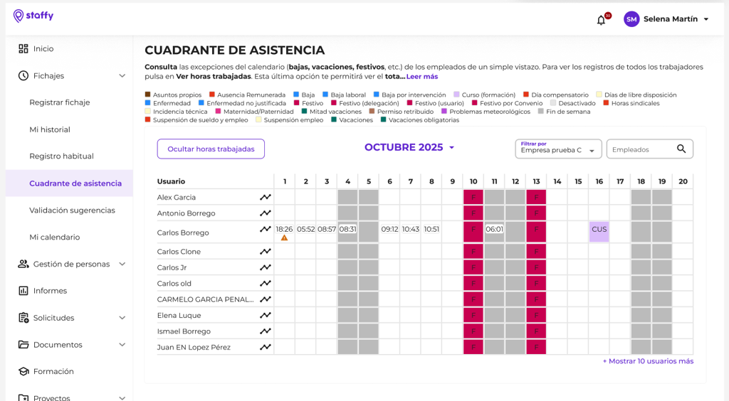 • Ausencia de fichajes: No existe ningún fichaje registrado en ese día.