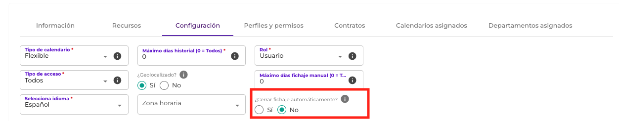 6. ¿Se puede cerrar automáticamente un fichaje?