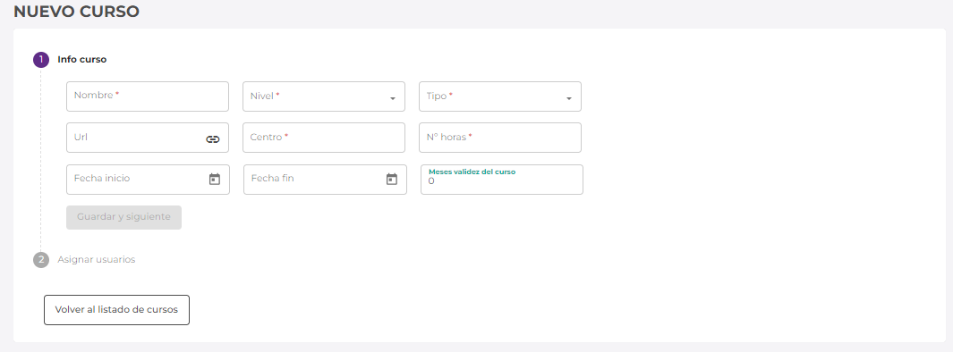 - Nombre*: indicaremos el nombre del curso.