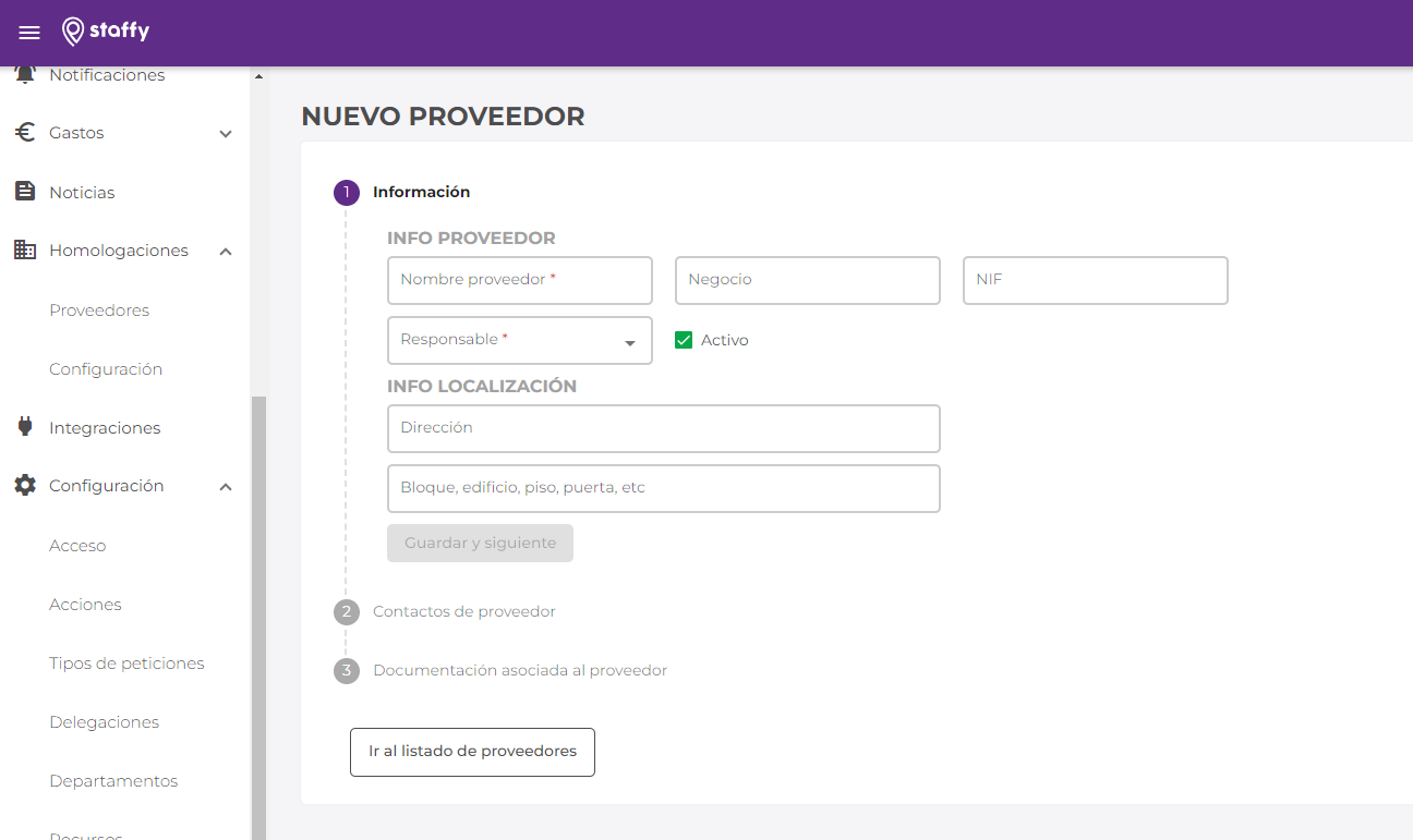 En esta sección, podrás editar los datos de los proveedores y añadir más documentos según sea necesario. Esto te permite mantener toda la información del proveedor en un solo lugar, facilitando su gestión.