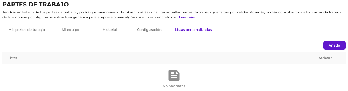 6. ¿Cómo creo una lista personalizada de elementos para los partes de trabajo?