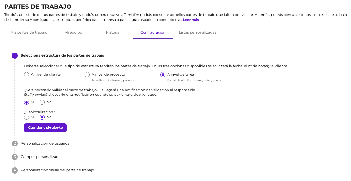 ¿Qué puedo configurar en los partes de trabajo?